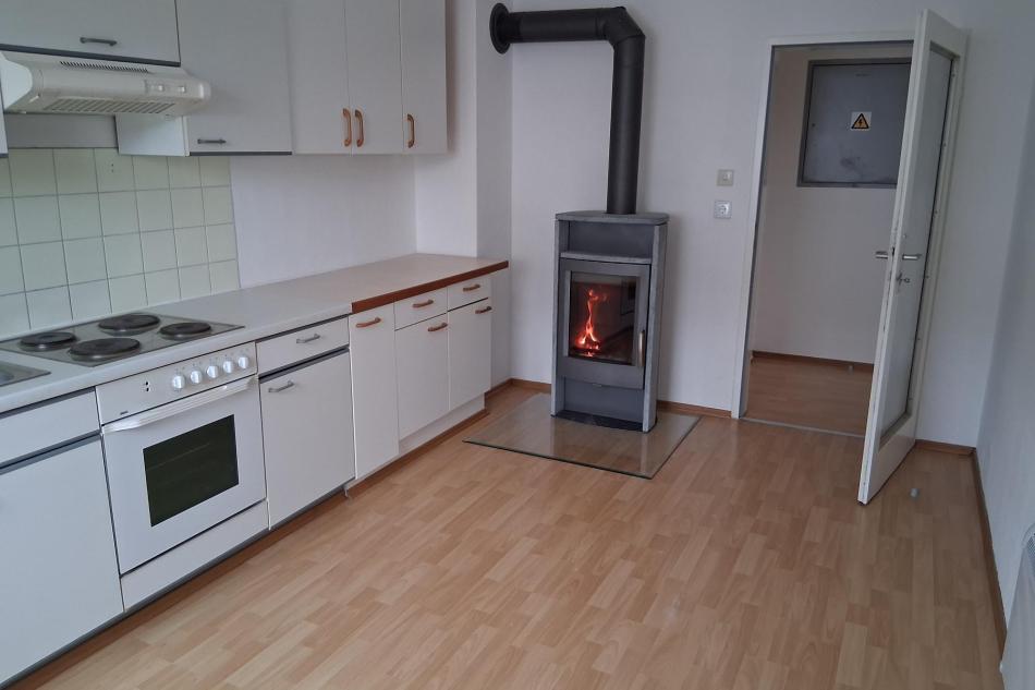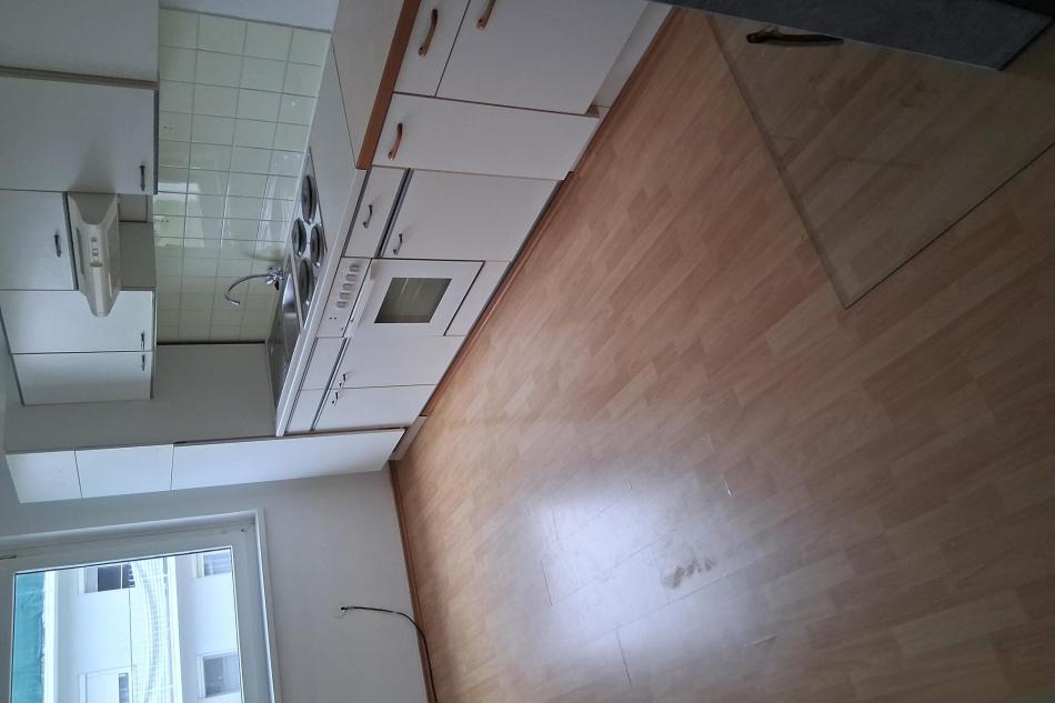 Wohnung in Bad Tatzmannsdorf, 47m², großes Zimmer + Küche mit E-Herd + Vorraum + Bad mit Wanne, Anschluss für WaMa, getrenntes WC. 1. Stock, Fenster Richtung Osten