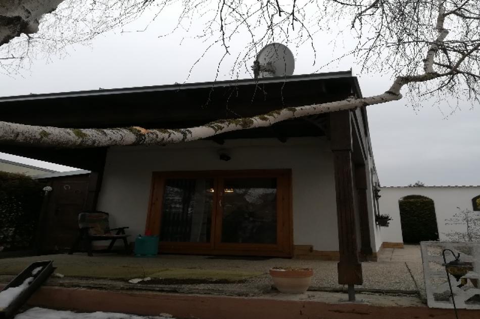 Terrasse wurde erst im September 2017 mit Holzdach verkleidet.